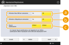 Se si imposta su <Tramite SMB> e l'impostazione <Gestione autenticazione> viene impostata su <On>