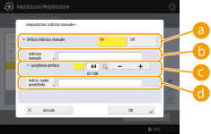 1 | Premere <Impostazioni indirizzo manuale>. |