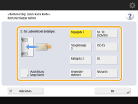 Wenn ein anderer Bildschirm als der für die Angabe des Papierformats und -typs angezeigt wirdWenn eine Meldung angezeigt wird, die Sie auffordert, die Papierführung einzustellen, stellen Sie die Breite der Papierführung ein, und drücken Sie <OK>. |