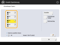 Wenn der eingelegte Papiertyp nicht angezeigt wird, drücken Sie <Detail. Einstell.>, um den Papiertyp aus einer Liste zu wählen.