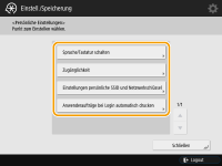 Zur einfacheren Verwendung des Bildschirms <Startseite> und des Grundfunktionsbildschirms der jeweiligen Funktion können Sie den Bildschirm durch Neuanordnung der Schaltflächen oder Anlegen von Schnellschaltflächen anpassen. Darüber hinaus können Sie effizienter arbeiten, wenn Sie häufig verwendete Funktionen als <Persönlich>/<Gemeinsam> registrieren oder die persönlichen Einstellungen verwenden, um die Betriebsumgebung an Ihre Wünsche anzupassen.