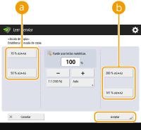 ![]() | Si escanea originales de tamaño libre o con mucha transparencia, o si desaparece el borde de la imagen al escanear, tiene que especificar manualmente el tamaño de lectura. |