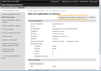 1 | Cliquez sur [Gestion d'applications MEAP] cliquez sur une application pour définir les informations d'authentification. |
