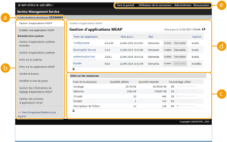 [Infos sur les applications MEAP] | Affiche une liste des applications (à l'exclusion des applications du système) installées et désinstallées. |