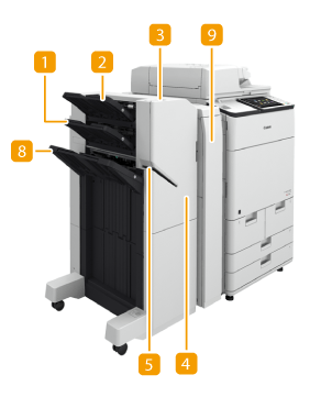 Si vous installez l'"Unité de Perforation 2/3 Trous-A" ou l'"Unité de Perforation 2/4 Trous-A" (pour la machine de 230 V uniquement) dans le "Module de Finition agrafage-V" ou dans le "Module de Finition P.A.C.-V", vous pouvez perforer vos tirages. |