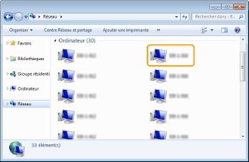 Sélectionnez [Réseau] ou [Favoris réseau] et double-cliquez sur l'ordinateur tenant lieu de serveur d'impression.