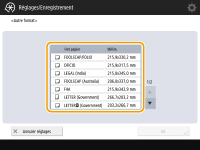 Lors de l'enregistrement d'un papier de format personnalisé