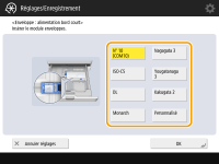 1 | Sélectionnez la cassette à papier dans laquelle les enveloppes sont chargées et appuyez sur <Enveloppe>. |