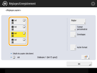 Si le type de papier chargé ne s'affiche pas, appuyez sur <Réglages détaillés> pour le sélectionner dans la liste.