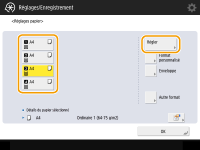 Sélectionnez la source de papier dans laquelle le papier est chargé et appuyez sur <Régler>.