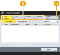 État et journaux des tâches de copie, d'impression, d'envoi et d'enregistrement