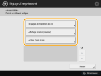 Appuyez sur <Accessibilité>, puis sélectionnez le réglage à configurer.