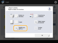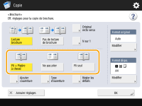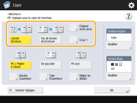 Appuyez sur <Modifier> dans <Format original> et sélectionnez la taille de l'original. Si vous sélectionnez <Auto>, le format de la brochure est automatiquement sélectionné en fonction de la taille de l'original.