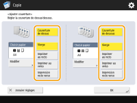Pour ajouter une couverture, appuyez sur <Couverture de dessus>. Lorsque vous copiez sur une couverture, vous pouvez définir où copier ; sur le recto, sur le verso ou bien sur les deux côtés.
