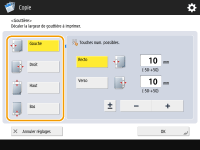 Si vous saisissez un nombre inférieur à 0, la marge est définie du côté opposé à la position spécifiée dans l'étape 4. Utilisez cela si vous voulez réduire la largeur de la marge quand vous copiez un original qui a déjà des marges.
