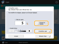 Appuyez sur <Changer les réglages> pour modifier les réglages. <Echantillon copie> s'affiche après que les réglages ont été modifiés. Copiez un nouvel échantillon.