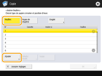 Pour insérer deux ou plusieurs feuilles, appuyez sur <Nbre feuilles à insérer> et saisissez le nombre de feuilles à l'aide des touches numériques.