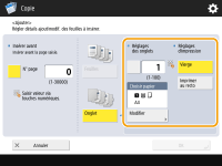 Sélectionnez le format papier dans <Choisir papier> de telle sorte qu'il corresponde au papier à onglets que vous avez chargé. Pour changer de papier, appuyez sur <Modifier>.