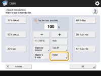 Spécifiez le pourcentage d'agrandissement ou de réduction à l'aide des boutons à l'écran ou des touches numériques.