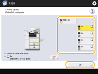 Appuyez sur <Modifier>, sélectionnez le format papier, puis appuyez sur <OK>.