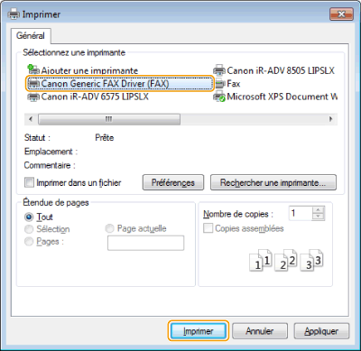 Sélectionnez la machine et cliquez sur [Imprimer] ou [OK].