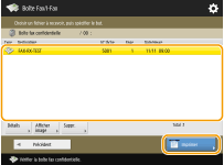 Appuyer sur <Détails> vous permet de vérifier les informations sur le document, y compris les noms des émetteurs et le nombre de pages reçues.