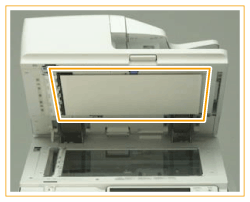 Essuyez le verso du chargeur et de la vitre d'exposition.