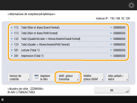 Vous pouvez imprimer une liste indiquant le nombre de pages utilisées pour la copie, impression, numérisation et télécopie.