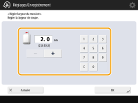 Si le massicot optionnel est installé, vous pouvez découper le bord des brochures. Ce paramètre vous permet de régler la largeur de découpe.