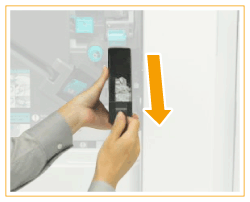 Suivez la procédure décrite dans cette section pour éliminer les déchets de perforation de l’Unité de Perforation 2/3 Trous-A/Unité de Perforation 2/4 Trous-A(pour la machine de 230 V uniquement) qui est installé dans le Module de Finition agrafage-V/Module de Finition P.A.C.-V optionnel.