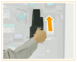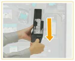 Suivez la procédure décrite dans cette section pour éliminer les déchets de perforation de l’ Module de perforation-BF/Module de perforation-BG(pour la machine de 230 V uniquement) qui est installé dans le Module de Finition agrafage-X/Module de Finition P.A.C.-X optionnel.