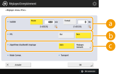 2 | Configurez les réglages nécessaires. ![]() <Validité>Définissez la période de validité de l'IKE SA généré. Assurez-vous d'attribuer une valeur au paramètre <Heure> ou <Format>. Si vous attribuez une valeur aux deux paramètres, la valeur atteinte en premier est appliquée. <PFS>Si vous réglez la fonction Perfect Forward Secrecy (PFS) sur <Oui>, la confidentialité de la clé de cryptage est renforcée, mais la vitesse de communication est plus lente. En outre, la fonction PFS doit être activée sur l'homologue de communication. <Algorithme d'authentif./cryptage>Sélectionnez <Auto> ou <Réglages manuels> pour définir la configuration de l'algorithme d'authentification et de cryptage de l'échange de clés de phase 2. Si vous sélectionnez <Auto>, l'algorithme d'authentification et de cryptage ESP est automatiquement défini. Si vous souhaitez définir une méthode d'authentification particulière, appuyez sur <Réglages manuels>, puis sélectionnez l'une des méthodes d'authentification ci-dessous.
