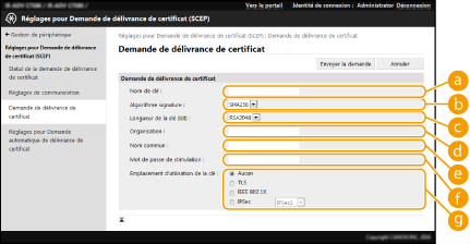 [Réglages pour Demande de délivrance de certificat (SCEP)].
