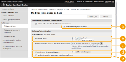 Configuration des réglages détaillés des fonctions d'authentification