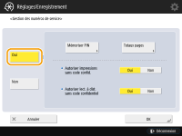 L'écran de connexion peut s'afficher au lancement d'une opération ou après la sélection d'une fonction. Spécifier quand afficher l'écran de connexion