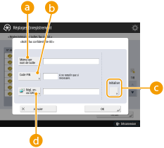 5 | Sélectionnez le numéro de boîte spécifiez chaque réglage et appuyez sur <OK>.![]() <Mémoriser nom de boîte>Enregistrez un nom pour la boîte. <Code PIN>Saisissez un PIN pour la boîte. <Initialiser>Initialise la boîte. <Régl. envoi URL>Active l'URL pour une boîte avec des documents qui peuvent être envoyés par e-mail ou vérifiés sur l'écran d'interface utilisateur distante.