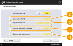 Sélectionnez <Oui> dans <Utiliser le serveur SMB>, puis effectuez la configuration nécessaire.