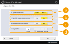 <Cryptage requis pour connexion>Pour demander une connexion avec une communication cryptée SMB v3.0 lors de la connexion à un serveur SMB, appuyez sur <Oui>.