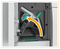 Fermez le guide gauche, et remettez l'unité de pliage dans sa position initiale.