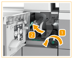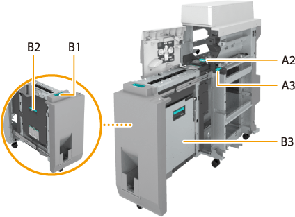 ![]() | Remettez l'unité de pliage de papier (B1) dans sa position d'origine. |