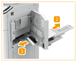 Vérification avant toute manipulationSi le magasin grande capacité A3 ou le magasin à papier en option est installé, retirez-le de la machine. Fermez le capot ouvert. |