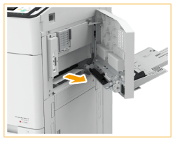 | Puis, retirez doucement le papier coincé depuis l'intérieur dans le sens de la flèche. |