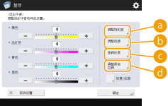 ![]() | 分别调整黄色、洋红、青色、以及黑色的浓度。也可以指定清晰度和色调对色彩进行微调。 |
