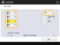 용지가 적재된 용지 공급원을 선택하고 <설정>을 누릅니다.