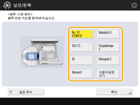 1 | 용지가 적재된 용지 카세트를 선택하고 <사용자설정 크기>를 누릅니다. |