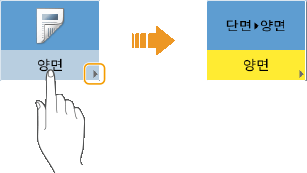 ![]() 또한 넘기기 및 집기 작동을 비활성화할 수 있습니다. <플릭/핀치 기능 사용> 이동 가능한 버튼이 있는 화면의 경우 버튼을 끌어서 놓아 이동할 수 있습니다. ![]() |
