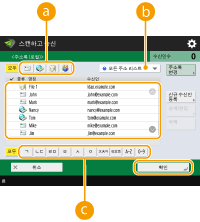 스캔 기본 기능 화면에서 수신인을 지정하십시오. 스캔 기본 기능 화면