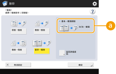雙面>,對開頁原稿的左側和右側頁面會分別影印到一張紙的兩面。