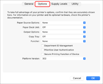 In the displayed dialog, click [Options & Supplies].