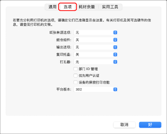 从[平台版本]选择设备中安装的平台版本。如果[平台版本]未正确设置,有些打印设置可能无法使用。